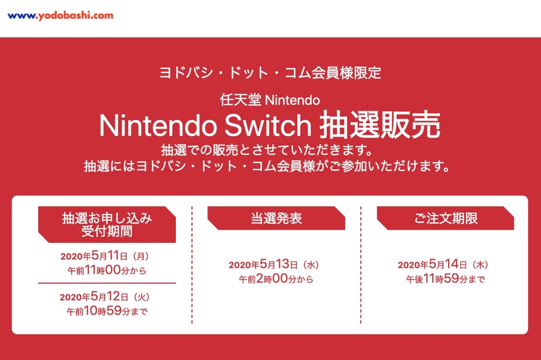 ヨドバシ Nintendo Switch などの抽選販売受付を5月12日まで実施 会員限定 Engadget 日本版